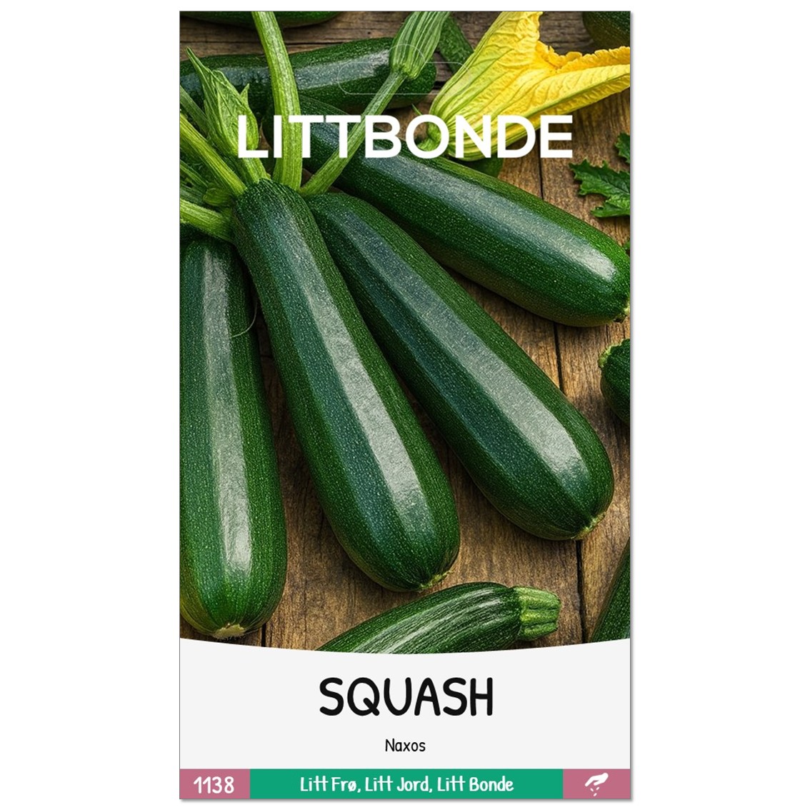 Squash Naxos er en kraftig, tidlig og svært produktiv sort som gir rette, glatte og mørkegrønne frukter med delikat smak og sprø konsistens.